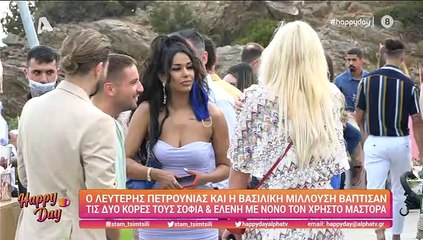 Το απόγευμα του σαββάτου 12/06 η βασιλική μιλλούση και ο λευτέρης πετρούνιας βάπτισαν τις κόρες τους στο εκκλησάκι της παναγιάς της καταφυγιώτισσας στην περιοχή της παλαιάς φώκαιας. Τις δύο κορούλες τους βάφτισαν το απόγευμα του σαββάτου ο λευτέρης πετρούνιας και η βασιλική μιλλούση. Πως απο φιλοι εγιναν ζευγαρι, αλλα και ποιος εκανε την πρωτη κινηση.. Ο γάμος και η διπλή βάφτιση των παιδιών τους. Μπορεί μέχρι το μεσημέρι ο καιρός.